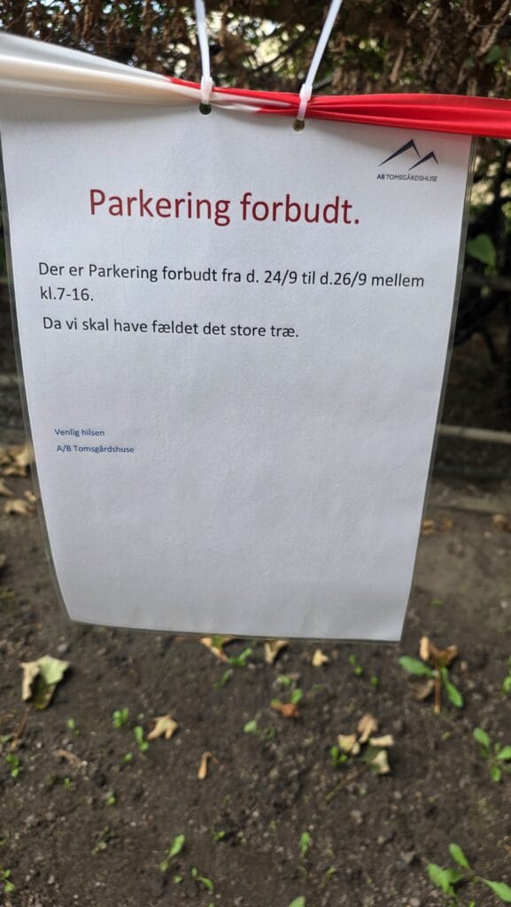 Fældningen af træet vil påvirke parkeringsforholdene. Vi beder jer derfor være opmærksomme på følgende:
