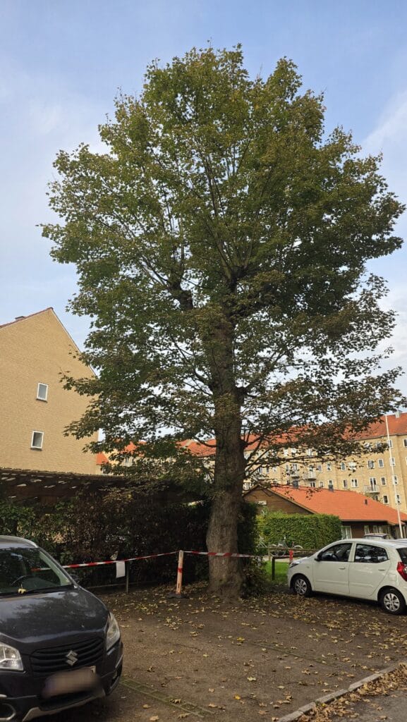 Vi har en trist nyhed at dele. Vores smukke, gamle ahorntræ ved parkeringspladserne foran 94B, som har prydet vores forening i mange år, skal desværre fældes.