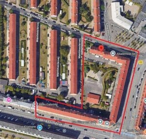 Der er blokkene, som er de 4 enkeltstående bygninger Møntmestervej 8, 10, 12, 14.Den lange sammenhængende bygning er randbebyggelsen, også kaldet “Randen” og omfatter følgende adresser: