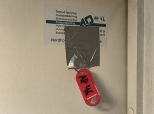 - Aflever nøgle og nøgleskilt hos varmemesteren. Du kan smide dem ind ad brevsprækken til hans kontor.